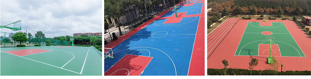 还有含胶粒的多层做法这种面层材料及工艺的优点是平整度高、表面硬度高、耐磨、抗晒、色泽鲜艳、使用寿命长便于管理和维修。这种面层材质稳定的篮球场,球员场上跑动舒服,是一种既可供娱乐打球也可用做正规比赛的篮球场地。